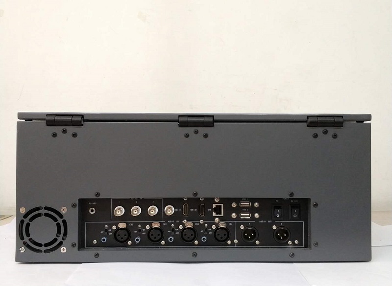其它特性 | 支持高清和标清同时录像保存,视频输出入接口:HDSDI*4,HDMI*1,硬件混编特技台*1,内置高增益音频处理器,4路话筒XLR,混音调音,内含19寸显示屏。高标清素材全部保存,用于后期编辑,内置3组摄像机及云台的控制装置,2GB独立显卡*1,内含视频管理编辑软件。 |