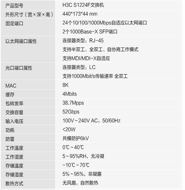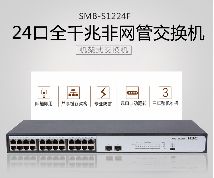 华三(H3C)-交换机-S1224F 24口全千兆 二层非网管交换机