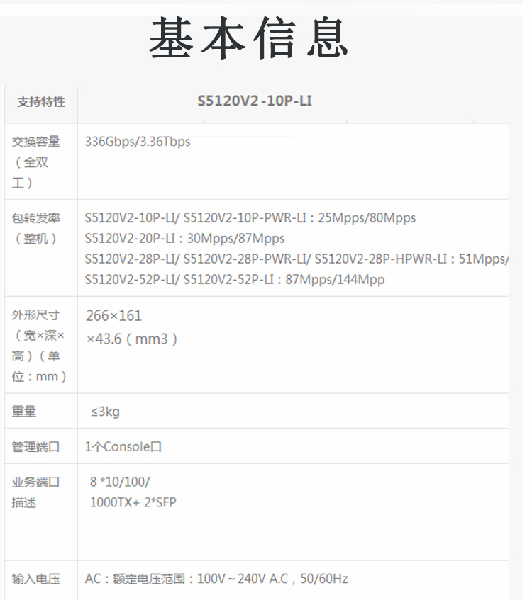 华三(H3C)-交换机-S5120V2-10P-LI 8口千兆企业级网管交换机
