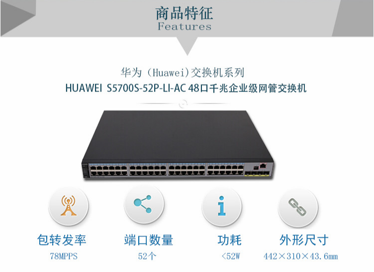 华为(HUAWEI)-交换机-S5720S-52P-LI-AC 48口全千兆三层企业级以太网络核心交换机