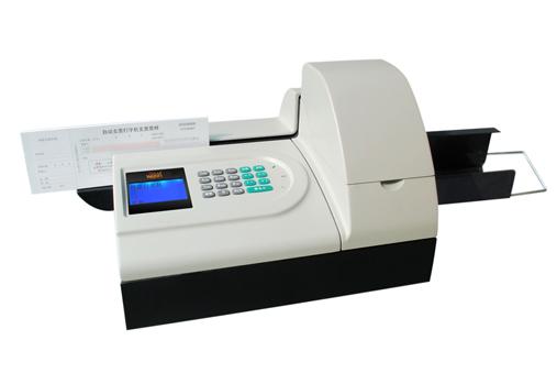 其它特性 | 此款机器为全自动进票方式,支票正反面信息可同时打印,并可打印支付令。可容200张支票,并且不同内容支票可连续打印,打印效果清晰、规范,噪音小;可打印付款行名称、出票人账号、收款人、金额、日期、密码、二维码等信息一次性打印;可适用于长度152-230mm、宽度70-110mm、厚度0.096-0.016mm的票据。 |