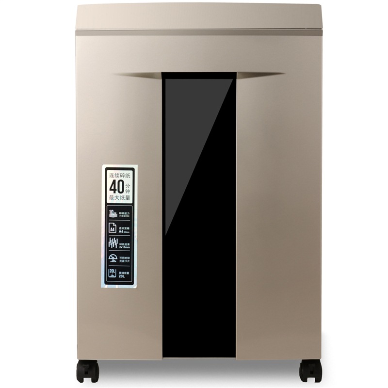 特性 | 40分钟满负荷碎纸,氮化钢刀,碎纸能力强,超大容量,两侧手提,机底设有万向轮! |
