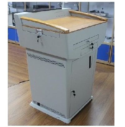 其它特性 | 1、整体布局小巧玲珑,桌面为平整桌面,可放置笔记本电脑。 2、钢木结合构造,流线圆弧设计。 3、讲桌桌面板采用防火板,防火、防尘、防水、耐刮花。讲桌主体采用。1.5mm冷轧钢板,其它部分采用1.2mm冷轧钢板。扶手为橡木材质。 4、显示器盖板采用翻转式设计,视觉角度可任意调节。 5、桌体采用标准机柜尺寸设计,所有设备整齐排列。 6、讲桌前脸采用亚克力装饰板装饰,美观、高档、大气。 7、讲桌底部可扩充活动轮,方便移动。 8、讲桌尺寸:长89*宽68*高110(CM) |