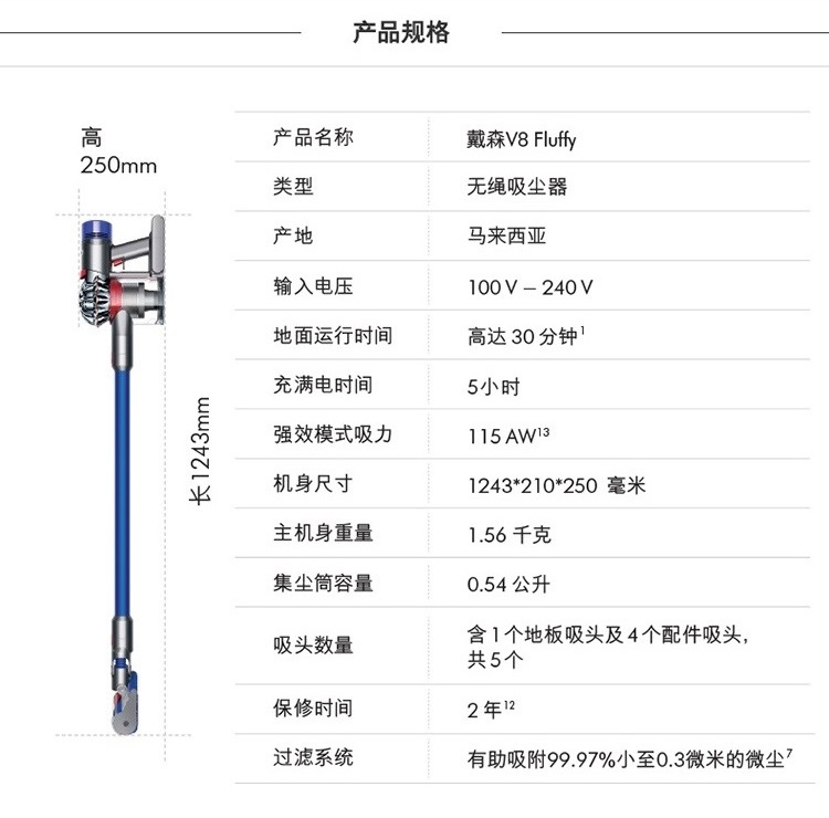 1243*210*250(机身+杆+地板吸头) |