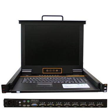显示设备键盘配置说明 | 四合一8口机架带LCD,OSD菜单选择(17寸屏),支持USB、PS/2混接 |