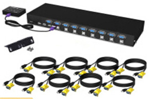 显示设备和键盘配置说明 | 8口(VGA)机架式KVM切换器,OSD菜单、按键切换,支持级联,一个远程用户。 |