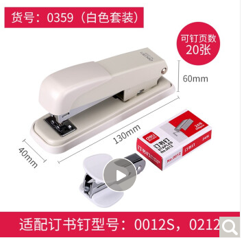 得力(deli)-钢制耐用办公订书机套装(订书机+起钉器+订书钉)-0359白色-12#-组合套装