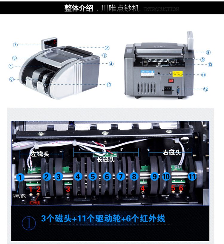 磁性检测;安全线检测;荧光检测;紫光检测;红外鉴伪;幅面鉴伪 |