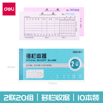 得力-单据-二联收款收据三联收据本多栏出入库单销售清单送货单批发 二联多栏收据 3498 10本装