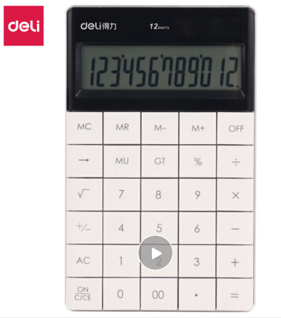 得力-计算器-双电源时尚彩色平板式计算器 12位无缝按键桌面计算机 白色1589