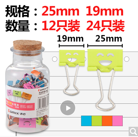 齐心-夹-B3697 漂流瓶彩色笑脸票夹 长尾夹 内装25mm12只 19mm24只
