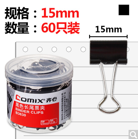 齐心-夹-60只15mm黑色长尾票夹 金属票据夹燕尾夹铁夹子 小号 B3630