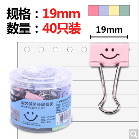 广博-夹-40只装彩色长尾夹子19mm燕尾夹长尾票夹爱の微笑WX9406