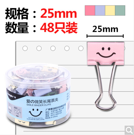 广博-夹-48只装25mm彩色长尾夹子燕尾夹票夹爱の微笑WX9407