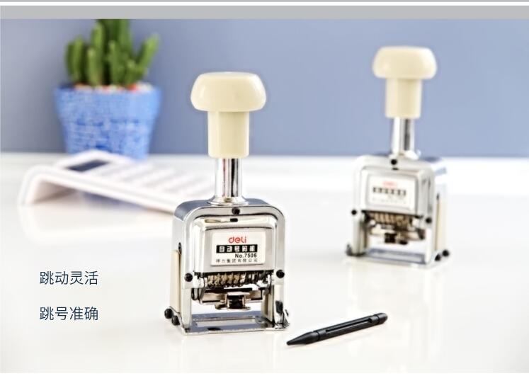 得力(deli)-号码机-自动号码机 手动打码机编号打号器页码机日期可调数字印章 9位自动号码机 7509