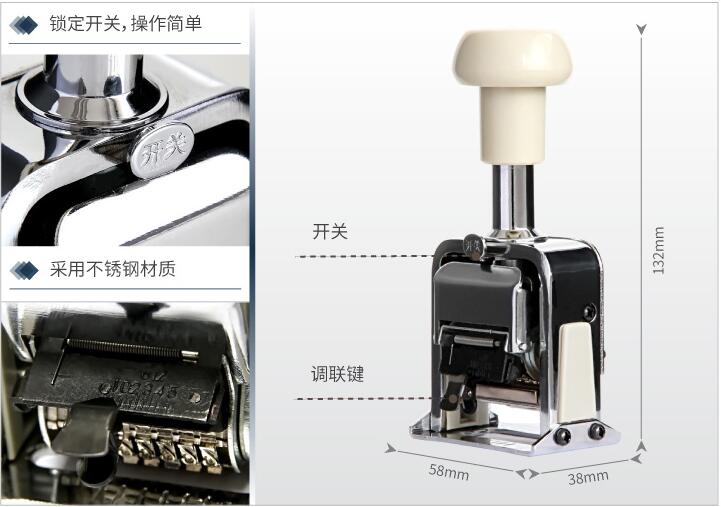 • 型号: 自动号码机 手动打码机编号打号器页码机日期可调数字印章 9位自动号码机 7509