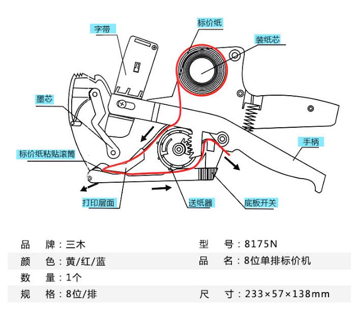 • 型号: 8175N 8位单排标价机/打码机/打价机 黄色
