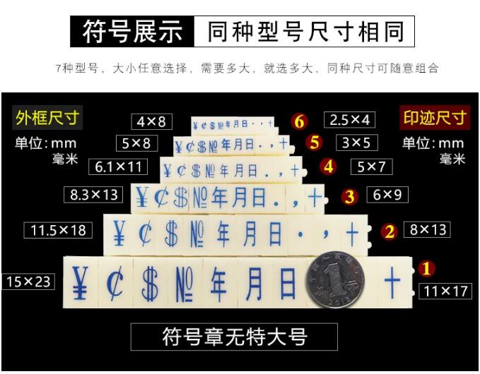 • 型号: 活字印 号码印 0~9数字亚信组合印章可调日期超市价格标价号码机英文字母符号章 【5号】符号印*字体高5mm宽3mm